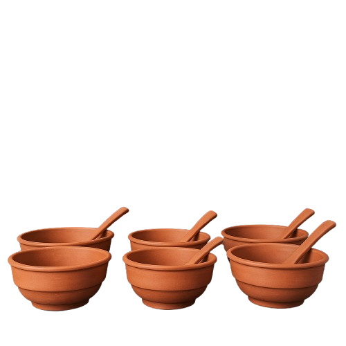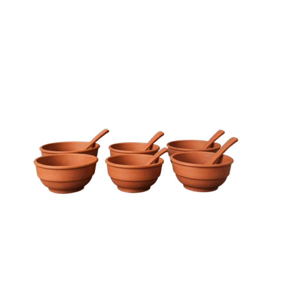 Clay Soup Bowl Set with Spoons – 6 Piece Traditional Dinnerware
